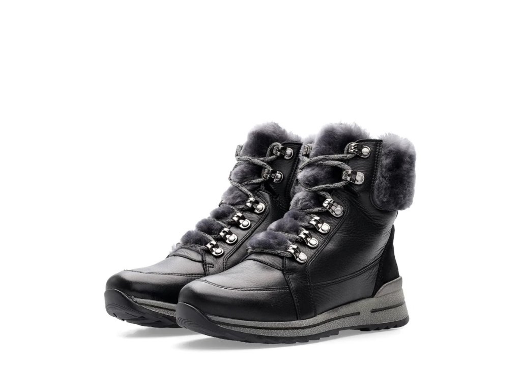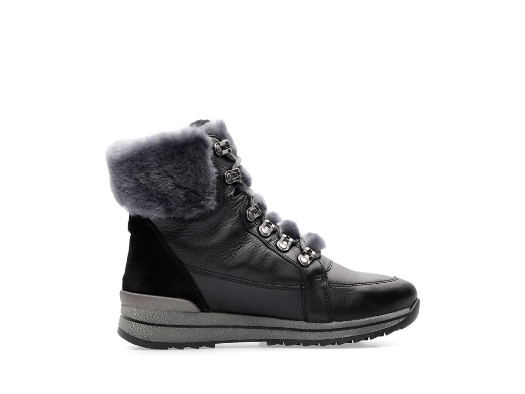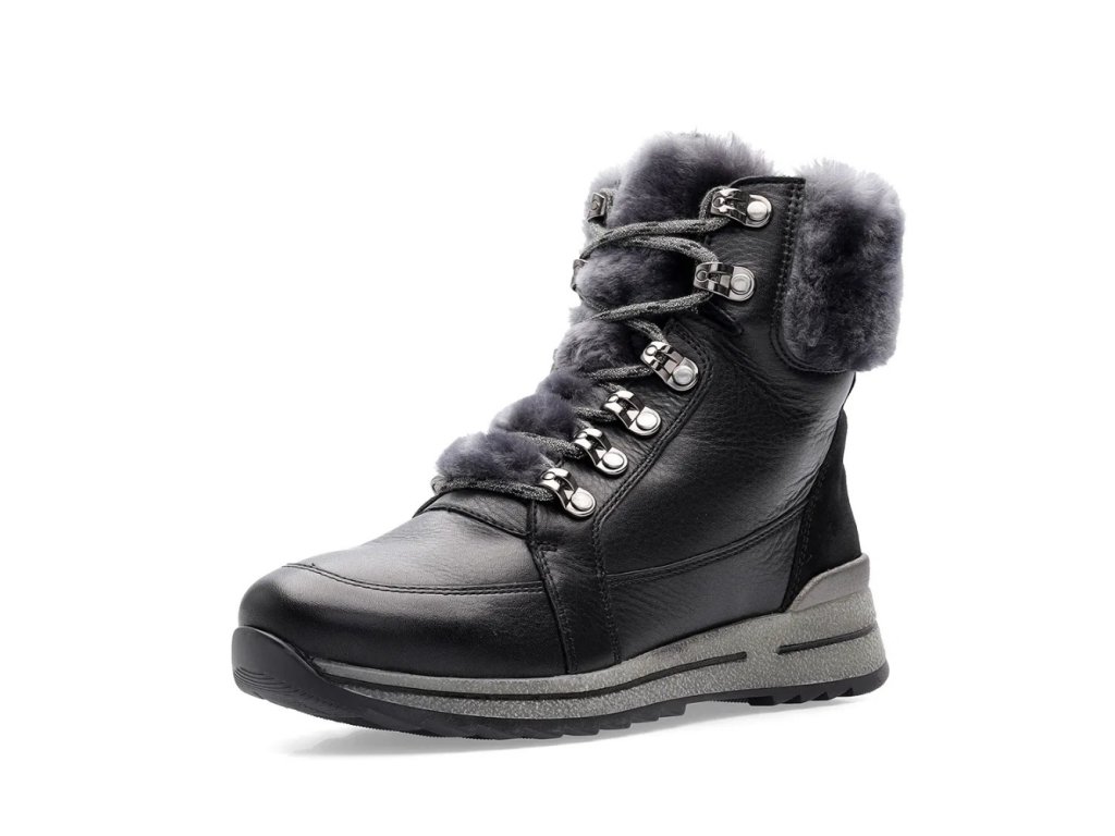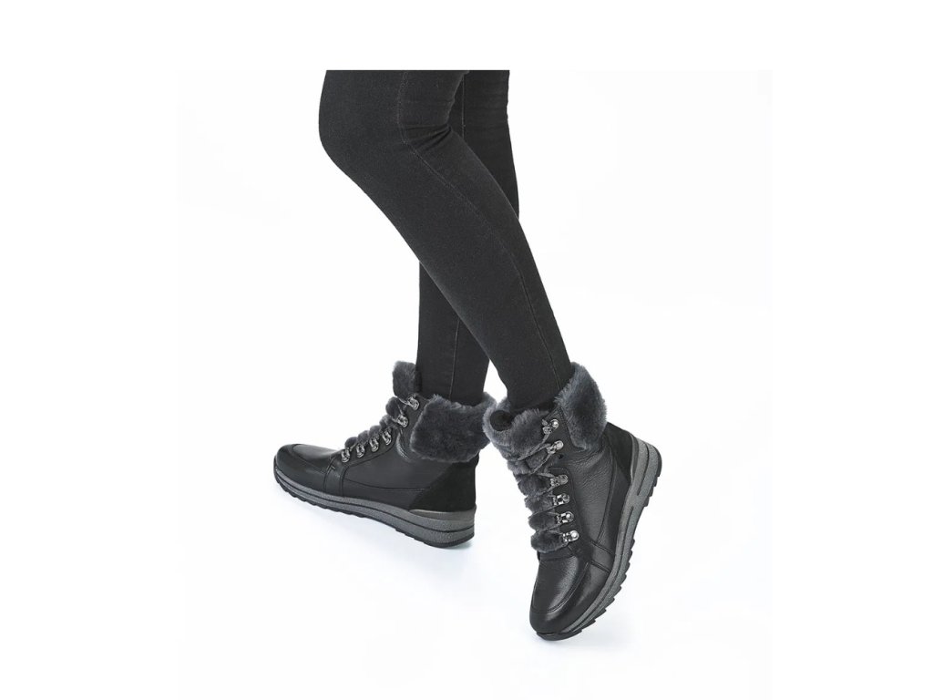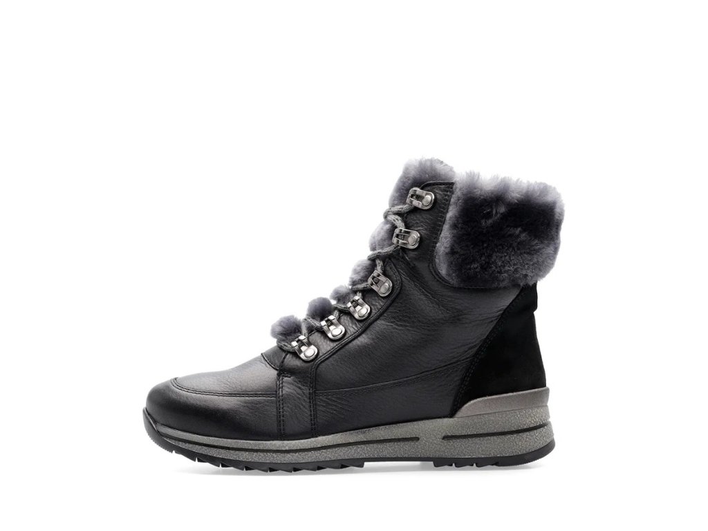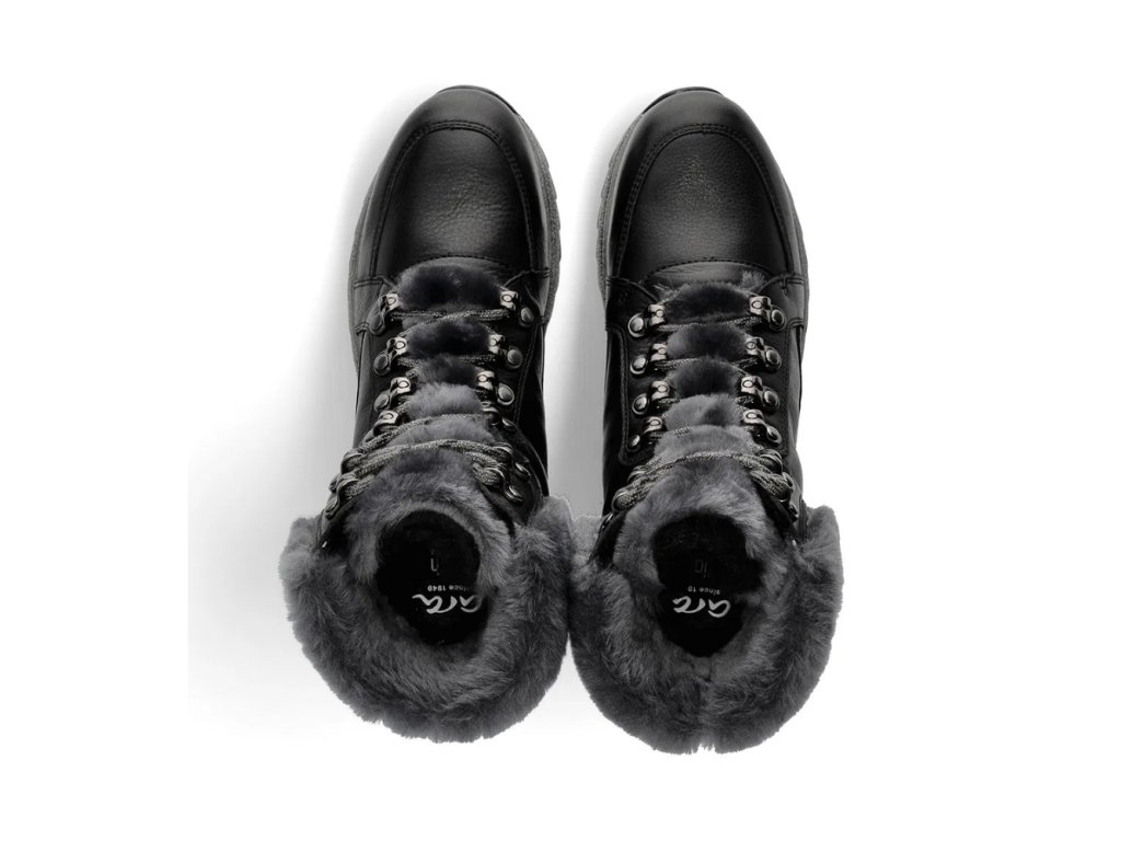 ARA dámský kotník s kožešinovým lemem zateplený kožený černý | 12-24599-11