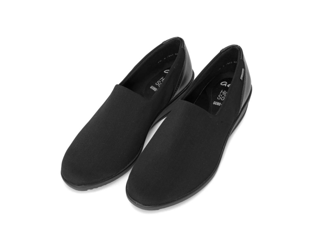 Dámské polobotky Zürich v černé barvě jsou ideální kombinací sportovního stylu, funkčnosti a pohodlí. Měkký strečový svršek se perfektně přizpůsobí chodidlu a spolu s šířkou H poskytuje dostatek prostoru i pro širší nohu. Vyjímatelná měkce polstrovaná stélka ve spojení s technologií HighSoft® zajišťuje vynikající odpružení a pohodlný krok bez únavy i při delším nošení. Gore-Tex® membrána chrání proti vlhkosti a udržuje nohy v suchu i za nepříznivého počasí. Protiskluzová podešev s decentním 3cm klínkem poskytuje stabilitu a sportovně-elegantní vzhled. Díky textilní podšívce je obuv příjemná a lehká, takže ji na noze téměř necítíte. Tento univerzální model je perfektní volbou pro každodenní nošení, práci i volný čas – ideální pro ženy, které vyžadují moderní design a maximální komfort.